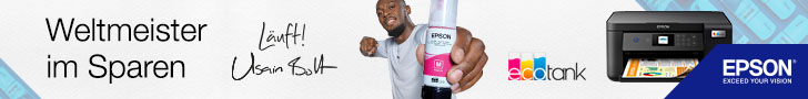² Angegebene Ergiebigkeit berechnet auf Basis eines Originalverfahrens von Epson aus einer Drucksimulation für Testmuster nach ISO/IEC 24712 bzw. 29103. Die angegebene Ergiebigkeit wurde NICHT gemäß ISO/IEC 24711 oder 20102 gemessen. Die tatsächliche Ergiebigkeit hängt von den gedruckten Dokumenten, dem verwendeten Papiertyp, der Häufigkeit der Nutzung und den Umgebungsbedingungen ab. Bei der Ersteinrichtung des Druckers wird eine bestimmte Menge an Tinte verwendet, um das System zu füllen. Daher kann die Ergiebigkeit des ersten, mitgelieferten Tintensets niedriger sein.“