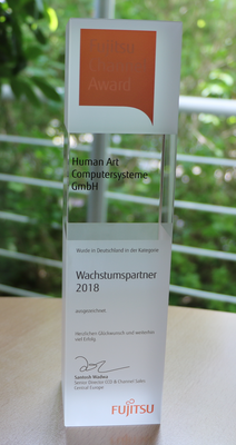 Fujitsu Technology Solutions GmbH hat unser Unternehmen in Deutschland in der Kategorie "Wachstumspartner 2018" ausgezeichnet. Damit krönt die Human Art ihre jahrelange Erfolgreiche Zusammenarbei mit der Fujitsu.